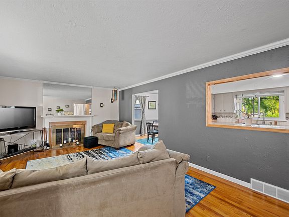 Inside, the open living area features a breakfast bar and formal dining space, creating a warm and welcoming atmosphere. The main level includes 3 spacious bedrooms and 1 ¾ baths, providing comfortable and convenient living. The finished basement is a true highlight, featuring a cozy family room with a bar and kegerator, ideal for entertaining. It also offers 3 non-conforming bedrooms/offices/flex spaces and a 3rd bathroom. Outside, the large, fenced backyard is an entertainer's dream, offering plenty of space for outdoor gatherings. Mature trees provide natural shade, adding to the beauty of the lush yard. Additional features: hardwood floors, detached two-car garage, long driveway for extra parking, and newer roof and gutters. With over 2,200 sq. ft. of finished living space, this is an incredible value.