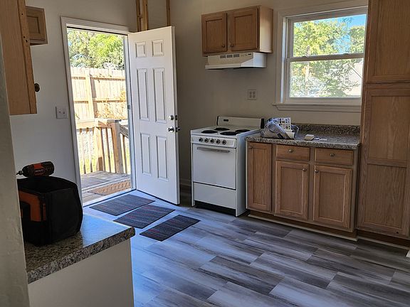 Newly remodeled, new carpet, lots of kitchen cabinets, built in dressers, wrap around porch, very private with private lane to the house. Close to interstate and public transportation. Renter pays all utilities. No smoking inside newly remodeled property.
