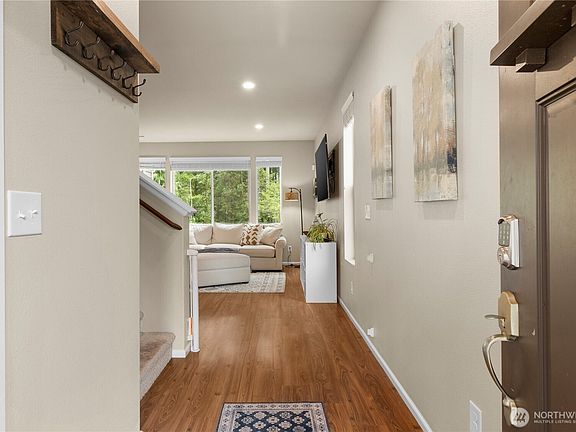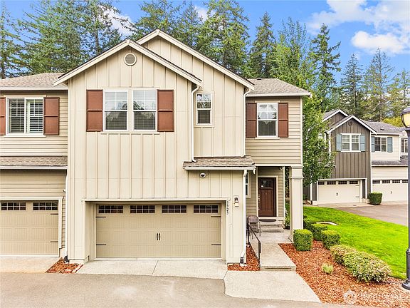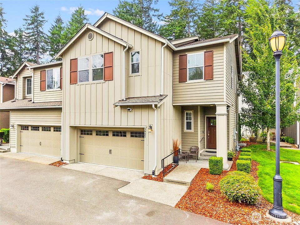 Bright and spacious end-unit townhome in coveted Meridian Campus! This nearly 2,000sqft home backs to a protected greenbelt and features a fully fenced yard and private patio. The open-concept main floor offers tall ceilings, laminate flooring, and a large kitchen with white cabinets, island w/ snack bar, stainless appliances, and a single basin sink with pull-down faucet. Upstairs, the large primary suite offers serene views, a 5-piece bath, dual vanity, and walk-in closet. Two additional bedrooms share a Jack & Jill bath. Bonus: mudroom entry from the roomy 2-car garage, upstairs laundry with storage closet, and abundant natural light throughout. Nearby parks, trails, all Lacey amenities and a quick commute to JBLM. Don't miss this one!