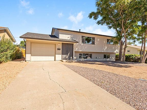 THIS IS IT – Your Search Stops Here! Completely reimagined and fully remodeled from top to bottom, this stunning 4 bed, 2 bath home offers 1,584 square feet of basically new living space without the new home price tag. Located on Pueblo's desirable Southside, this turnkey property is packed with modern updates & thoughtful upgrades throughout. Step inside to discover brand-new flooring, fresh interior paint, updated fixtures, and new windows on the lower level, flooding the home with natural light. The kitchen shines with new cabinets & new appliances, while the washer and dryer (gently used) are ready for your convenience. Outside, enjoy not one but two freshly painted storage sheds & one that is ideally oversized! They are perfect for extra storage, a workshop, or hobby space, plus you have an attached single car garage. Finally, a partially replaced sewer line and a new roof that tops it all off—literally! Centrally located near schools, shopping centers, restaurants, and more, this home offers both comfort and convenience. Whether you're a first-time buyer or looking to upgrade, this move-in-ready gem is one you don't want to miss. Schedule your showing today! (House is virtually staged)