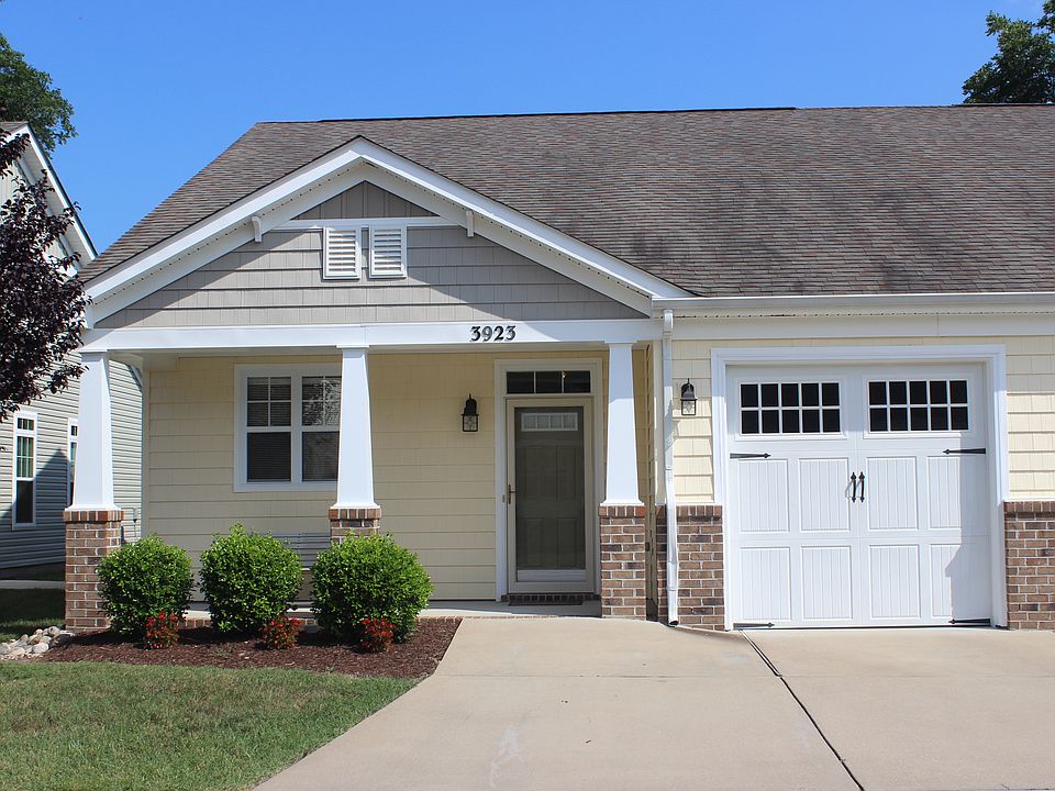 Beautiful 55+ condo in excellent condition. One living level. Spacious open floor plan with cathedral ceiling. Full size kitchen and eat in area. End unit--only two units per building. One car garage with two driveway spaces, as well as multiple guest parking areas. Very private, small backyard with nice patio area. Master bedroom suite with full bath and huge walk in closet. Very nice clubhouse for group entertaining. Gated community for security. Two pets allowed, under 40 pounds. Maintenance free living. Monthly condo fee $183. Come see!