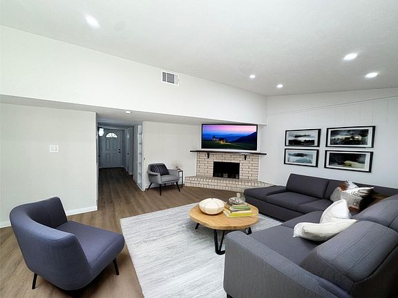 Welcome to this charming 3-bedroom, 2-full-bath residence boasts a fresh, modern interior recently painted in soothing tones, creating a bright atmosphere throughout. The primary bedroom features an en-suite full bath and a spacious walk-in closet. New ceiling fans installed in every bedroom. The heart of the home is the open kitchen, featuring brand-new appliances, sleek new faucet, freshly painted cabinets with stylish new pulls, and a large window that fills the space with natural light while offering views of the vast backyard—perfect for outdoor entertaining or relaxation. New light fixtures and updated door hardware elevate every room. Gather around the cozy fireplace, the focal point of the family room, to create lasting memories with loved ones. The exterior has been freshly painted. Complete with a two-car garage with newly epoxied floor for durability and a polished look. Don't miss out on your new home—schedule your showing today!