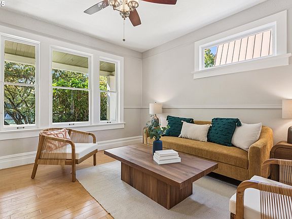 Charming 3-Bedroom Craftsman Home with Spacious Yard & Modern Comforts. Welcome to this beautifully updated 3-bedroom Craftsman-style home, perfectly blending classic charm with modern conveniences. Featuring hardwood floors on the main level and stunning cork tile upstairs, fresh interior paint, and a formal dining room, this home offers a warm and inviting atmosphere throughout. Enjoy year-round comfort with mini-split A/C and heating, and the convenience of main-floor laundry. The spacious front porch is perfect for relaxing or entertaining, while the large yard provides plenty of room for gardening, play, or outdoor gatherings. A detached garage offers secure parking and extra storage. Located close to restaurants, shopping, and public transportation, this home offers both comfort and convenience in an ideal location. [Home Energy Score = 6. HES Report at https://rpt.greenbuildingregistry.com/hes/OR10242064]