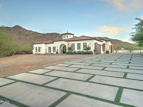 Own a piece of paradise at the base of South Mountain in a luxurious, private neighborhood. This custom-built estate boasts breathtaking mountain views and quick access to the I-10 and 202 freeways. Sunset Cove Estates truly embodies its name, offering the Phoenix Valley's most breathtaking sunrises and sunsets. Spanning approximately 3,462 sqft, this home features 4 spacious bedrooms with walk-in closets and 3.5 elegantly designed bathrooms, including a Jack and Jill for convenience. Revel in 14-foot ceilings transitioning to 10-foot in the bedrooms, creating an airy feel. A grand iron front door opens to an expansive living area with a 15-foot window slider framing gorgeous views. The split master suite provides a private retreat, and South Mountain Park's hiking and biking trails are steps away. Experience luxury, comfort, and panoramic views in this exceptional home.