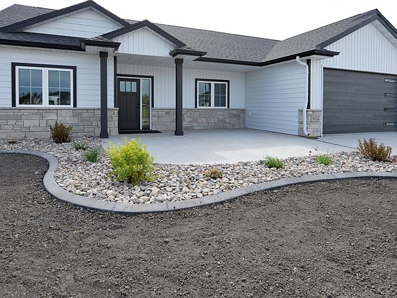 Step into this stunning 1,716 sq. ft. custom rambler featuring 9’ ceilings and thoughtful design throughout. The private primary suite is tucked away from the main living area and showcases a custom shower, dual vanities, and a spacious walk-in closet. The open-concept great room and kitchen are perfect for entertaining, highlighted by painted cabinetry, Whirlpool appliances, a large pantry, and a stylish island with solid surface countertops—all centered around a cozy fireplace. Enjoy convenient main-floor living with a rear-entry 3-stall garage, a generous laundry room, drop zone with built-in bench, full bathroom, and two additional bedrooms.