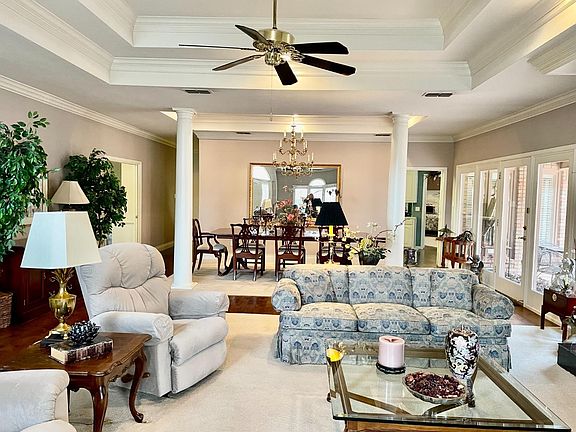 This is a rare find in highly desirable Crown Point in Kings Gate subdivision. This is an incredible garden home built by Galen Kerr and the first time it has ever been listed in MLS. Featuring a large living room with fireplace and built-ins*Elegant formal dining room with columns and views of patio*Isolated master suite with TV built=ins* separate shower and jetted tub*Sit down vanity and double sinks*Two walk-walk-in closets with built-in storage*Large guest bedrooms with Jack and Jill bath with separate shower and tub*large walk-in closets. The kitchen has all the built in appliances plus an island with downdraft cooktop and a breakfast nook. Large laundry room with storage galore plus a three car garage makes this the perfect retirement home. Beautiful curb appeal and a cozy brick patio completes this lovely home. Don't miss out on this gorgeous property in a quiet neighborhood.