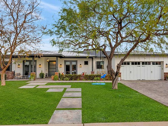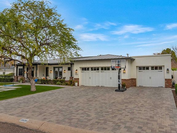 Exquisitely crafted in 2017, this open-concept home offers 4 bedrooms, 4.5 baths, a playroom, office, and an extended 3-car garage. Interior highlights include European Oak hardwood floors, contemporary fireplaces, custom built-ins, detailed wainscoting, and trim work. Situated on a half-acre North/South lot, the outdoor space features a shaded patio, built-in speakers, citrus trees, regulation bocce court, ramada with misters, heated saltwater pool and spa, grassy play area, and poolside basketball hoop. The chef's kitchen impresses with a large quartz island, Thermador appliances, farmhouse sink, wine cooler, beverage drawer, and walk-in pantry. Nestled on a picturesque street in one of Phoenix's most sought-after neighborhoods, this home offers a rare blend of style and comfort.