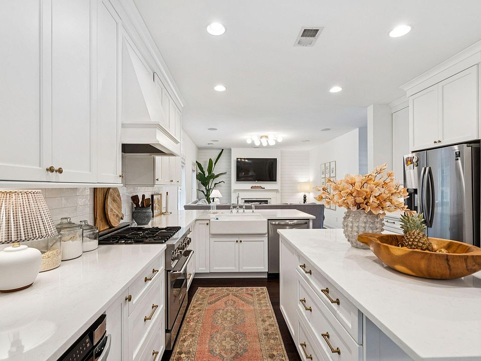New custom fireplaceDesigner finishesPrivate wooded lotUpdated hardwood flooringOpen flowLarge center islandSerene woods