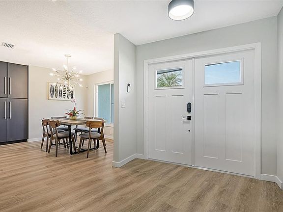 This beautiful newly renovated pool home features 3 bedrooms, 2 bathrooms. The home sleeps 6 and is in the neighborhood of Forest Lakes South, Sarasota. Modern updates include new flooring throughout, updated bathrooms & kitchen with new quartz countertops, new exterior facade & new doors. One small dog is allowed. This home provides peaceful pool and pond views from almost every room in the house. The spacious 1,929 sq. ft. home has a split bedroom floor plan with three bedrooms, two bathrooms, living room, dining area and family room with a wet bar. Multiple sliding glass doors open out to the large salt water pool. The primary bedroom has a King bed and features a walk-in closet, the ensuite bathroom has double sinks with a walk-in shower. The two bedrooms on the opposite side of the house provide ample privacy and shares a newly renovated bathroom with a walk-in shower. The second bedroom has a queen bed while the third bedroom features two twin beds. Enjoy cooking and socializing in the updated kitchen with quartz countertops, stainless steel appliances, including a refrigerator, microwave, stove/cooktop & dishwasher. Best of all the kitchen and living room has pool views for you to enjoy while cooking and entertaining. Across from the kitchen is the family room with a bar with a mini refrigerator and a coffee pot & Keurig combination. Just outside the sliding glass doors of every pool facing room is the screened in pool area with a large outdoor dining table and chairs, four lounge chairs and a BBQ grill. The outdoor shower is conveniently located before and after entering the pool. This home is perfect for vacationing, working or for gatherings with a multitude of spaces to do so. There is a separate room with the washer and dryer and just outside that room is the attached garage where you will find beach chairs, 2 coolers and beach toys. This home is located in a peaceful residential neighborhood and at the same time close to so many restaurants and shopping. Siesta Key Beach is only 6.3 miles driving over the Siesta Key south bridge and 7.3 miles driving over the Siesta Key north bridge. Experience one of the top beaches in the U.S. by walking in the world famous soft powdered almost pure quartz crystal sand beach. After the beach check out the casual tiki bars, gourmet dining establishments and local gift shops in the Siesta Key Village. Siesta Key Village has a farmers market every Sunday. Historic downtown Sarasota starts approx. 5.5 miles where you will find boutiques, gift shops, art galleries, fine dining restaurants, the Selby Botanical Gardens, concerts at the Van Wezel Performing Arts Hall, Sarasota Opera House to name a few. Downtown Sarasota always has activities during the holidays including a Pineapple Drop on New Years Eve. A little further north is St. Armands Circle where you will find more local shopping and dining and food festivals. This home is a dream come true to anyone looking for easy living with plenty of space and modern amenities. This is a non smoking home.