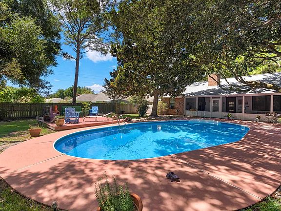 This home truly oozes enchantment. Nestled among majestic magnolias, it feels like a private oasis tucked away from the world. The longtime homeowner has lovingly cared for this property, with recent improvements that bring peace of mind: a brand-new roof (2024), updated pool filtration system and liner (2023), new septic lines (2024), fresh pool decking (2024), a Sentricon termite system, and other thoughtful upgrades. Inside, the layout offers both comfort and flexibility, featuring a split plan with the primary suite separated from two additional bedrooms. Two inviting living areas provide space for gatherings, relaxation, or activities, while the formal dining room, back in style, creates the perfect setting for meaningful meals and conversations. Step outside and discover your own backyard paradise. A sparkling inground pool with a new sun deck invites endless summer fun, while the oversized yard offers plenty of room to garden, play, or simply unwind. When evening falls and natures little winged visitors arrive, you can retreat to the screened-in porch and continue to enjoy the beauty of the outdoors in comfort. This Paradise Bay neighborhood is accessible to beaches, shopping, schools, medical facilities, deeded access to Pensacola Bay right down the street and so much more!