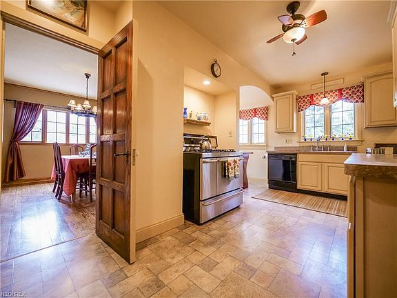 This picturesque brick cape cod situated on a quiet street in the desirable Kamm's Corner neighborhood is a must see! Located just a stones-throw from the Rocky River reservation, this home boasts hard to find vintage features that have been lovingly maintained including: beautiful hardwood floors, wood paneled doors and leaded glass windows. The large and inviting living room features a gorgeous leaded glass bay window that has been meticulously restored, a wood burning fireplace with tile hearth and restored wood beams on the ceiling. Eat in kitchen is large and well appointed featuring stainless refrigerator and gourmet range. Home offers plenty of living space featuring 5 bedrooms--two located on the first floor and three upstairs including a large master bedroom. Recent upgrades include: painting throughout much of the house, a newer electrical panel, water heater and storm doors. Don't wait, schedule your private showing today!