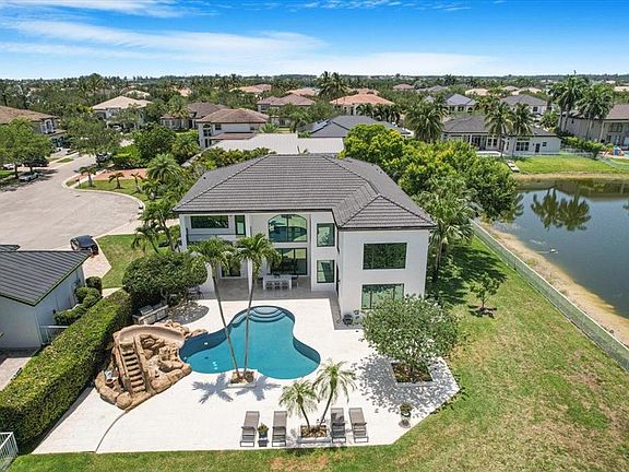An ultimate luxury living in the prestigious guard-gated Sunset Lakes, a community w. inviting amenities. Completely remodeled inside out, sitting on a .49 acres w. 276 ft lake front, stunning lake views & breathtaking sunsets. This contemporary home boasts w. 4 beds, an office/extra bed, 3.5 baths, 3-car garage, 6-car driveway, sensored stair lights up & down. Marbles fulfilled floors & walls. A kitchen w. a large waterfall quartz island, high-end appliances along w. a wine cellar & purified hot/cold water dispenser. New impact windows & doors. New travertine patio surrounding a refinished pool & driveway. Elegant landscaping w. accent LED lighting. HOA includes internet, ADT alarm, cable etc. A must see for the discriminating buyer who enjoys a modern lifestyle w. a relaxing atmosphere.