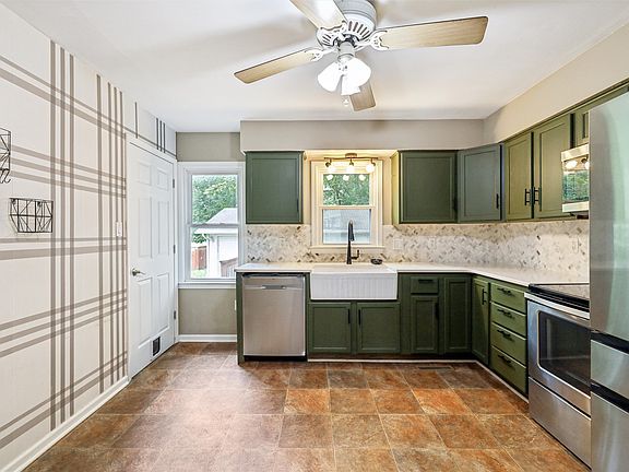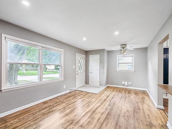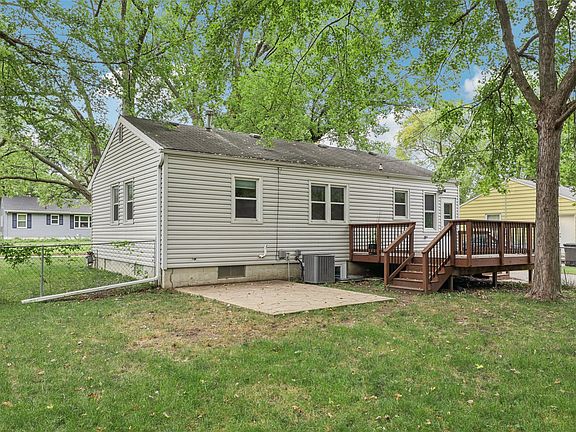 Check out all the upgrades that make this HOME! Hardwood floors, olive cabinets, emerald tile accents, stone backsplash, quartz countertops, and a spa-like bath with heated hex tile floors, soaking clawfoot tub, and walk-in tiled shower with framed glass door. New ROOF install coming SOON! The main level features a bright living room with recessed lighting and a large picture window, dining space, and a kitchen with stainless appliances, farmhouse sink, oil-rubbed bronze faucet with glass rinser, and a spacious pantry. Three bedrooms include built-ins shelves & cabinet for added storage. The partially finished lower level adds 500+ sq ft with epoxy-stained floors, hardwood stairs with emerald tile detail, a custom bar with 2-inch wood top & room for the beverage fridge, industrial sliding door, egress window, and plenty of storage. Outdoor living shines with a 14x14 deck, stamped concrete patio, and partially fenced 1/3-acre homesite. A 24x30 oversized 2.5-car garage provides all the space you need. Updates include: vinyl windows and siding, backup sump with water flow valve, 2017 furnace & AC, plus newer stainless appliances plus front load washer/dryer—all included. Prime Merle Hay location near Beaverdale, Waveland, parks, trails, restaurants, shopping and more! Move right in and make this your HOME today!