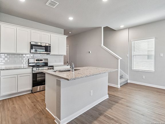 Welcome to Abbott Run in St. Hedwig, TX, offering a perfect blend of modern luxury, comfort and affordability. As you walk in, the main level features luxury vinyl plank with the bedrooms upstairs having carpet. The kitchen is highlighted by all stainless steel appliances and granite countertops in each unit. The primary suite bathroom features a stylish standing shower and dual vanity sink. Three bedrooms provide ample space for family and guests and a unique middle bathroom.