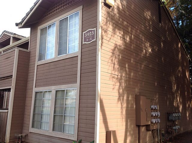 Location, Location! 2 bedroom 2 bath single story end unit and no unit above. Open floor plan with vaulted ceilings in the living room & master suite. Updated with stainless steel appliances, granite counters, maple cabinets, beautiful laminate flooring, 5" baseboards, ceiling fans in all rooms, fridge, washer and dryer. Includes water, garbage, club house, pool & spa. Conveniently located near major shopping areas & HWY 99. Walking distance to Mall, Schools, parks and Kaiser Hospital. No Pets! I do not have recent pics; the posted pictures are from few years ago (no carpet in the unit any longer). Water and garbage Included. Renter responsible for gas, electric and cable.