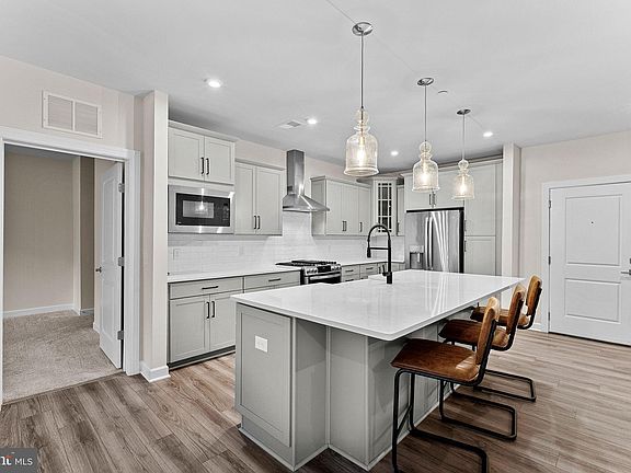 Newer lvp flooringQuartz countersOversized islandUpgraded stainless steel appliancesGourmet kitchenFull-size in unit laundry