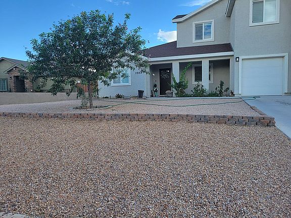 Front is desert landscaped, multi color gravel and retaining wall, the back yard has a horse shoe pit, stone built fire pit with 3 benches, outdoor kitchen with sink.
