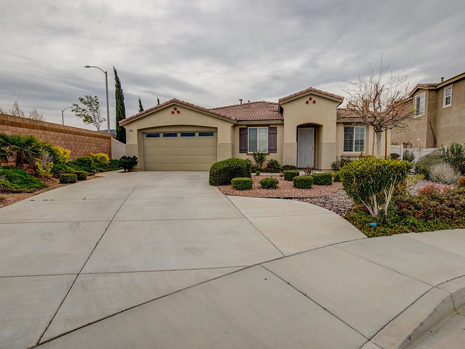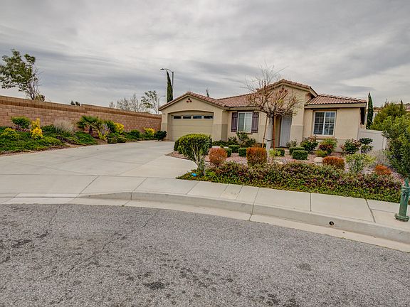 Beautiful well maintained single story home located on a quiet cul-de-sac in West Palmdale. This property is also located in a desirable school district. This property features an open floor plan perfect for entertaining. The kitchen is spacious with plenty of cabinet space and open to the dining area and family room. The family room has a built in cabinet, ceiling fan and access to the rear yard. The master bedroom is offers tons of space, large windows with plantation shutters, an en suite bathroom and a large walk in closet. There are 3 additional bedrooms and 2 additional bathrooms. There is a laundry room with built in cabinets and access to the garage. The rear yard is landscaped with a covered patio, low maintenance vinyl fencing and block walls. This house is a must see! Do not miss your opportunity to make it yours!