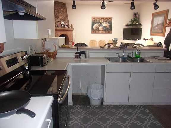 Camp Verde, This home has views of the Clear Creek, perfect for watching the wildlife and hear the creek running. Home has custom flagstone floors. Living room has 2 skylights and a fireplace with custom rock and a ceiling fan. Kitchen/dining combo has a breakfast bar and plenty of cabinets. Large pantry built under the stairs. Guest room has built-in niches. Guest bath has jetted tub and a tub/shower. Extra-large laundry room with cabinets and shelves. Stairs lead to master bedroom that has a walk-in closet and master bath has a shower. Master has separate access, Large carport for RV parking. Carport is plumbed for additional living quarters including a second level.