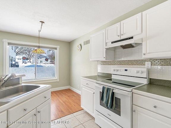 SO MUCH value with this 2 bedroom, 1.5 bath condo conveniently located in the heart of Lansing! With close to 1,000 square feet of living space, this home is completely move-in ready with some great updates. The kitchen is clean and tidy and has lots of cabinet and countertop space and a designer tiled backsplash. The living room is spacious and has a connected eat-in area, conveniently located next to the kitchen. The bedrooms are spacious, and this unit has 1.5 baths, unlike the others in the area. There is also a one car garage, perfect for winter time! The basement has even more space for storage or additional living space if desired. Brand new energy efficient windows have been installed as well! So much to offer with this move-in ready condo, hurry while this one lasts!
