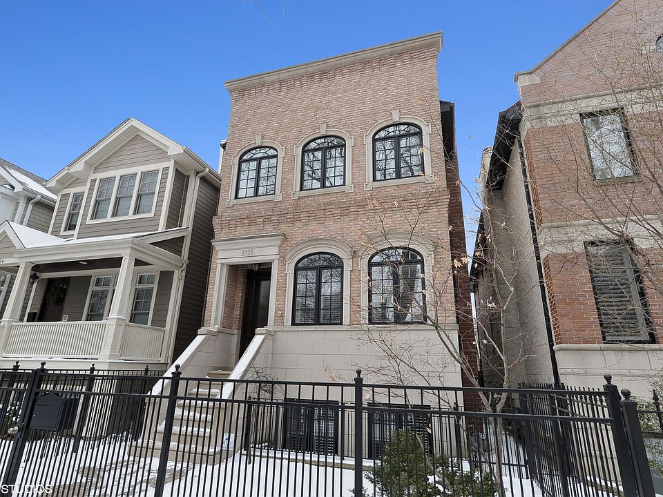 All brick home in Blaine school on a fabulous block with fabulous neighbors. Beautiful hardwood floors & limestone fireplace accentuate the living room. Formal dining room that could easily seat 10. Organized walk in pantry. Kitchen has lots of cabinets, oversized frig & range, island, table space, breakfast bar, & inlaid floor, Great room will accommodate that large TV. 3 good size bedrooms upstairs all w/cathedral ceilings. Master has separate closets and a master bath shower big enough for a king. Lower level gets morning sun from the extra large east facing windows. Family room has stone fireplace and true bar w/sink & frig. Great for sports day or game night. 4th bedroom & office w/built in bookshelves complete this level. Plus a huge storage room. Never used carpet thru out. New roof 2018. New light fixtures. 2 car garage w/an awesome roof deck. Just an amazing home. Walk to Southport, play park 1 block up the street, Brown line 4 blocks, and all the Wrigley Field fun close by.