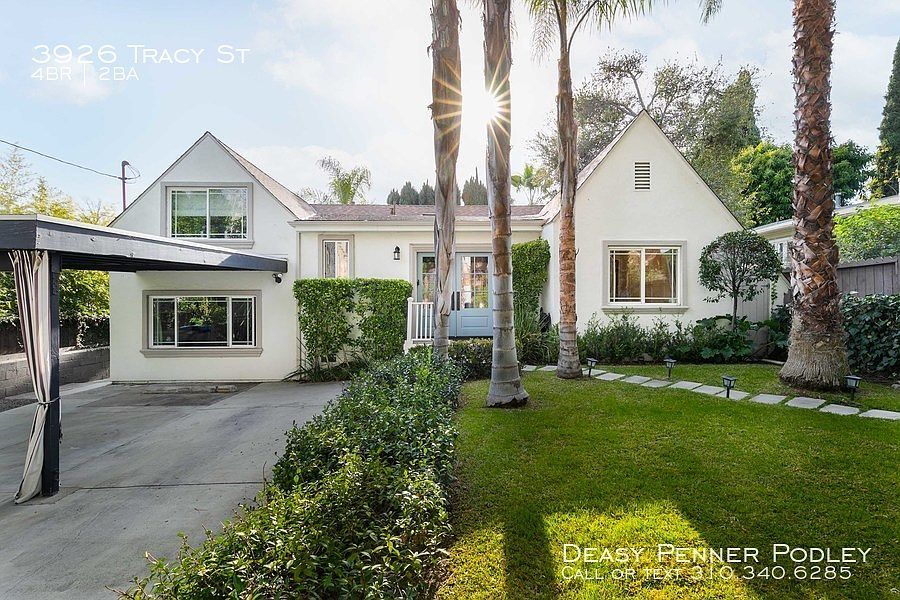 Applications Pending . This elegant, gated residence is located in the prime Franklin Hills area of Los Feliz across the street from the beautifully iconic Marshall High School. It is in close proximity to all of the shops and restaurants along Hyperion, Hillhurst and Vermont Avenues as well as activities & entertainment of Griffith Park, The Griffith Observatory and Greek Theatre!. As you enter the property through a charming, wrought iron pedestrian gate and follow a stepping stone path framed by towering palm trees, you will be drawn to the soft blue double door entry. Wainscoting and an exposed wood beam in the foyer perfectly frame the vintage chandelier and gas fireplace that pull you into the large living room. Highly contrasted window frames through common areas as well as beautiful french doors in the dining area and back bedroom were installed in the 2018 renovations. Additionally the primary bathroom was remodeled in and extended in 2016 to include a spacious, double rain shower, subway tiled and glass enclosed shower stall, patterned floor tiles, and a reclaimed wood style double sink vanity. This bathroom oasis is EVERYTHING! At the front of the home a sunken bedroom will easily accommodate a king sized bed and features a large double door closet. The lofted bedroom above is a strong contender for the primary bedroom with a spacious triple door closet, pitched ceiling and access to the second full bathroom that can be closed off from the rest of the home by a hallway door making this wing of the home feel like a private suite. The fourth and final bedroom has been converted into a glorified wardrobe closet and office. Lined on two walls by elaborate built-in custom cabinetry, this home has no shortage of storage!. An open concept kitchen features, dark wood cabinetry, granite countertops and tiled backsplash that bring warmth to the space. All appliances will remain with the home including a five burner gas range, double door, ice-maker refrigerator, dishwasher and built-in oven and microwave. The kitchen island with second sink provides additional counter space for preparing large meals for your next socially distanced backyard barbecue! Beyond the french doors, a large deck and lush grassy yard awaits. With an outdoor sectional and picnic table included, you will have plenty of seating for gatherings. The pandemic may have closed down our many LA theaters but we have a BONUS for you! As seen in the pictures, the owners are willing to include the projector screen (projector not included) should you wish to follow their lead and enjoy movie screenings in the lush private yard. Ask your friends to bring their lawn chairs or a blanket, and a dish to share then pass the sangria because this magically inviting yard is ready to host!. Contact me today for a socially distanced, private tour!