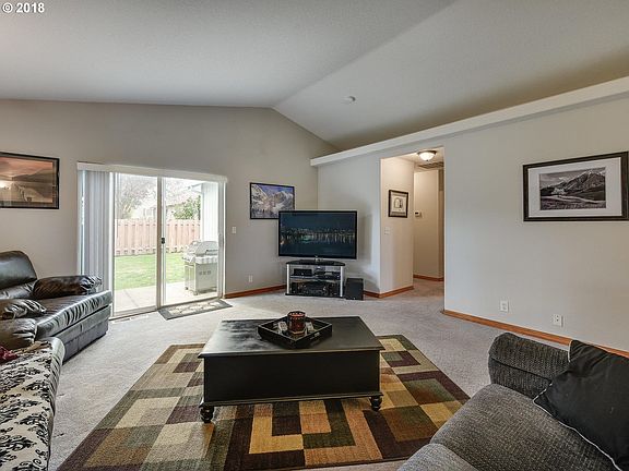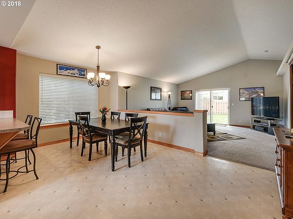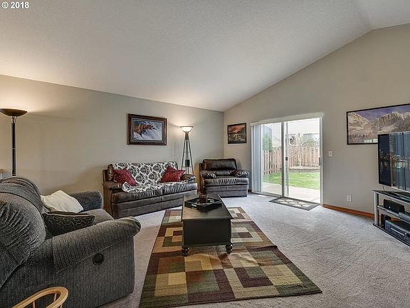 Beautifully maintained 1306 sf, 3 bd 2 bth ranch with covered front porch, easy care, level, fenced backyard with sprinkler system, oversized patio, and attached 2 car garage. Located on peaceful side street less than 3 blocks to 2 community parks, short distance to downtown Sandy, less than 30 minute commute to Portland or Mt Hood. Light and bright open floor plan, slider to backyard, central air and gas heat. Offers due 4/10.