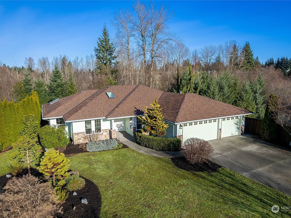 Welcome to this highly desirable Mill Creek community, where you'll find a beautifully 2023 renovated rambler that backs up to Thomas Lake! Prepare to be impressed by the exceptional features of this stunning home, including a modern kitchen equipped with high-quality SS appliances & elegant quartz countertops. The open, seamless floor plan effortlessly combines style & functionality, with a great room that allows for comfortable living & entertaining. This home offers ample space for everyone, with 5 generous bedrooms & 2 full baths in a tasteful architectural design. Impeccably upgraded, the home showcases numerous enhancements that elevate its appeal. A large lot surrounded by safety & privacy + a 3 car garage complete this masterpiece.