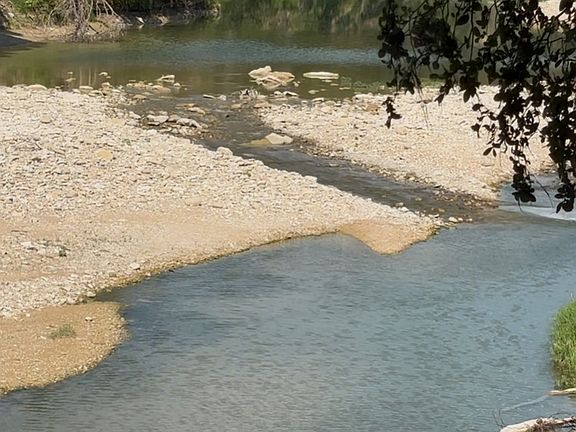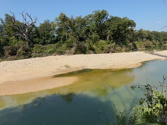Mature oak treesBeautiful hill country viewsHay fieldPossible building sitesRiver frontage