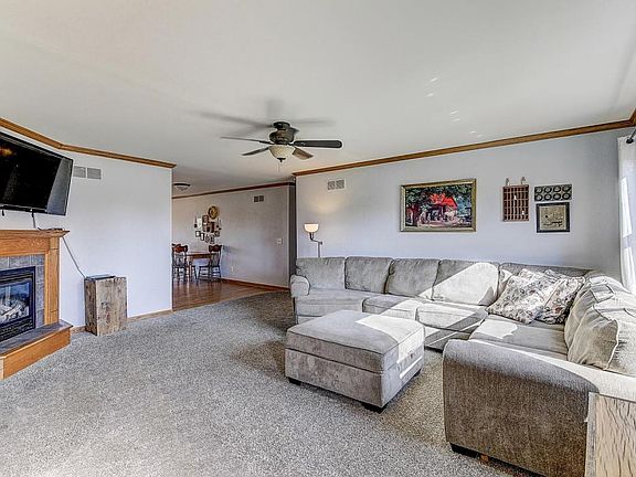 So much to love in this 3 bd, 3 bath Open Concept ranch home located on cul-de-sac. Step into the sunfilled living room with cozy gas fireplace. Entertaining is easy with extra large eat in kitchen with wood flooring and doors leading to patio and large backyard. Great sized bedrooms with Master Bedroom offering full bathroom and huge walk in closet. Lower Level boasts extra long living space with an office/flex space and full bathroom. Bonus Features: All new windows, Extra 1 car garage and shed out back. Total 4 garage spaces!! Located next to Golf Course!