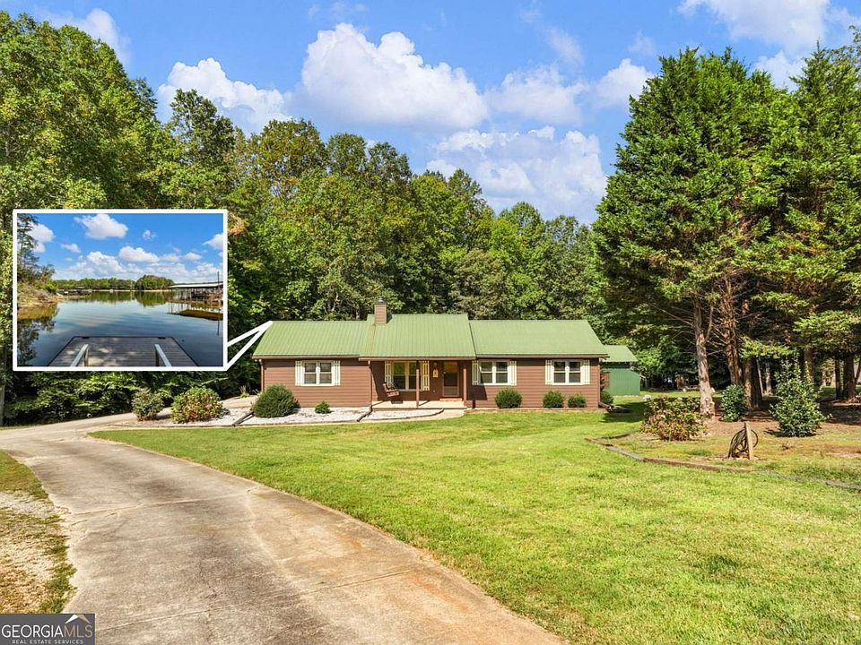 Welcome to Your New Lake Home! Discover this charming North Hall retreat perfectly located near Mount Vernon, North Hall Middle, & North Hall High School and Thompson Bridge Road. This ranch-style home features an unfinished basement with a finished bathroom, giving you endless possibilities for expansion or storage. Enjoy a flat beautiful, grassed lot leading gently to the water, complete with a newer aluminum platform dock for easy lake access. The property is unrestricted with no HOA, allowing you to truly make it your own. A spacious metal building provides the ideal spot to store your camper, boat, or create the ultimate workshop, and a wood shed for extra storage for wood. Directly across the street, you'll find a public boat ramp and day-use park, making lake life effortless. The home sits on a quiet cove, perfect for paddle boarding, kayaking, fishing, and other outdoor adventures. This property combines privacy, convenience, and recreational opportunities-a rare find on Lake Lanier. Schedule your showing today and start living the lake lifestyle!