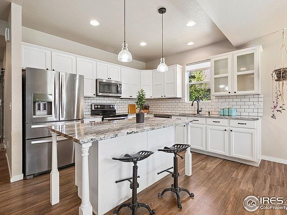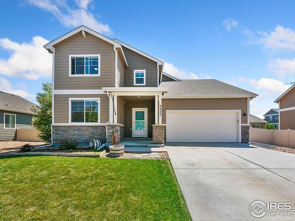 This charming two-story home in the Harvest Village community delivers both functionality and style with room to spread out and enjoy life inside and out. As you enter the home, a welcoming foyer leads you into a spacious open main living area, where you can enjoy gatherings and everyday life. The kitchen is a highlight, featuring stainless steel appliances, granite countertops, a stylish subway tiled backsplash, pantry for additional storage, and a center island that provides additional prep space and seating. A dedicated office near the front of the house provides the perfect space to focus and retreat for some quiet productivity, with just the right amount of separation from the main living space. Head upstairs to find three bedrooms, including the primary suite with its own ensuite bath and walk-in closet. An upstairs laundry brings ease and convenience to your daily routine. The finished basement adds even more value, offering a versatile living area with a bar, plus a fourth bedroom that's perfect for guests, storage, or more flexibility as your needs change. Outside, the fenced backyard features a concrete patio with a pergola, creating a wonderful outdoor living space for al fresco dining or enjoying the fresh air. Assorted newly planted trees enhance the beauty and privacy of the yard, contributing to a serene and inviting outdoor environment. The huge 3-car garage provides plenty of space for vehicles and storage. This vibrant community also includes a pool, playground, and nearby parks and trails, making it easy to get out and explore or unwind. Plus, with easy access to local amenities, this home is sure to meet all your needs.
