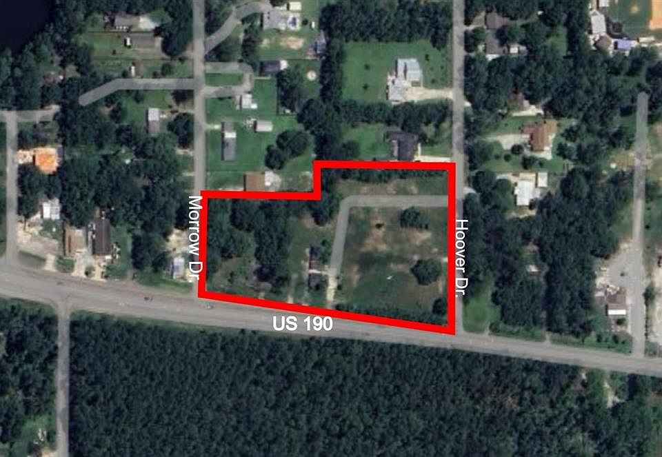 4.18 ACRES WITH OVER 614' FRONTAGE ALONG HIGH DEMAND HWY. 190E WITHIN 2 BLOCKS OF I-10 & MINUTES TO I-10/12/59 SPLIT; HIGH PROFILE HC-2 (HIGHWAY COMMERCIAL) ZONED; ROAD FRONTAGE 3 SIDES (614' HWY. 190 E, 234' MORROW DR. & 385' HOOVER DR.); CLEARED & SEMI STABILIZED; CITY WATER & SEWER WITHIN 200 YARDS; WOULD LEND USE TO ANY HIGHWAY COMMERCIAL NEED WITH INTERSTATE INFLOW & OUTFLOW
