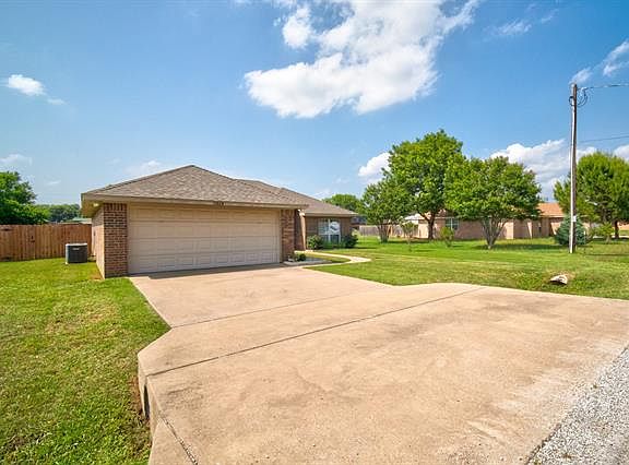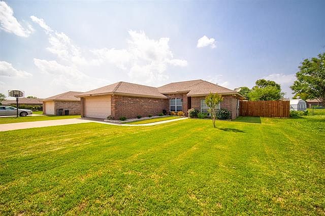 Immaculate, move-in ready 3 bed, 2 bath brick home with split-floor plan. Through the front door is the open kitchen, dining & living area. Living room features brick fireplace & windows overlooking the large backyard. Kitchen has beautiful leathered granite countertops with bar seating, modern hardware & appliances. Great layout for entertaining or family time. Spacious master bedroom with closet & ensuite with dual sinks & additional closet. Large covered wood pergola for shaded summer days in the newly fenced backyard. The vaulted ceilings & floor plan make the home feel even larger. Great location with convenient access to Ft. Worth & Weatherford. Rare find in Granbury with NO HOA! Come see it in person!