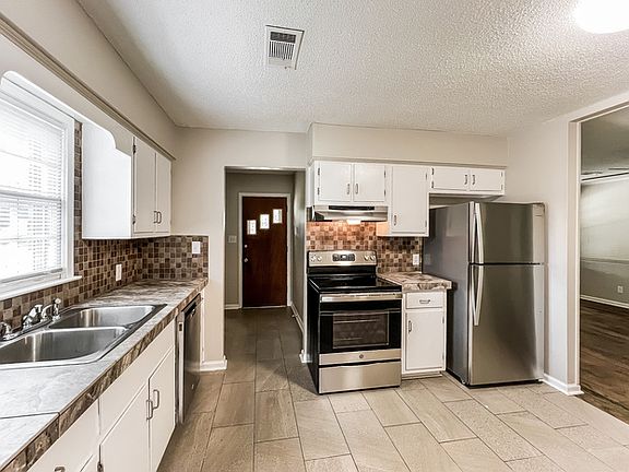 Out back, a covered patio and open concrete area extend the living space outdoors, creating a versatile area for relaxing or entertaining. With its brick exterior, functional floor plan, recent updates, and accessible Montgomery location, this home offers a balanced blend of space and practicality. Apply now!