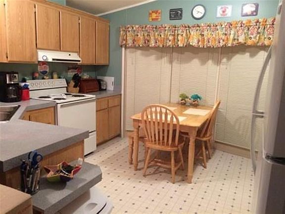 Great two bed one bath manufactured home. Very well cared for and loved. Rent is $345/month for the lot. Double closets in the master bedroom. Covered porch.