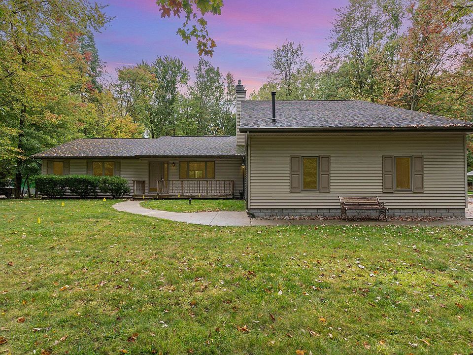 Fantastic Ranch located in Larkin Township! Open floor plan with great room layout, vaulted ceilings and skylights! Large Kitchen features new range and microwave, cherry cabinetry and large island with granite countertops and stainless appliances. Split layout features a large primary bathroom and bath featuring jaccuzi tub and walk-in shower. Updated decor including shiplap on fireplace and fresh paint and lighting throughout! There is a second primary suite with attached bath and walk-in closet on the opposite end-great layout for extended family living! Located in Waskevich sub with new homes being built by Cobblestone just a few doors down. Large wood deck is accessible from both primary suites and also from the great room. New C/AC unit. Beautiful lot includes access to city water at the road and great location within minutes of schools and shopping!