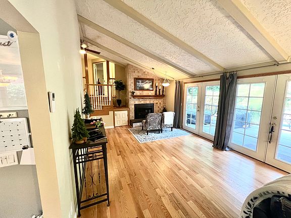 This home offers custom living w/ beautiful wood floor and wood staircase w/ vaulted entry; Main floor has stunning kitchen w/ tile backsplash, stainless island countertop, creamy white cabinets, & stylish pendant lighting; warm family room w gas fp, vaulted beam ceiling, & 2 sets of French doors to the deck; wainscoting reaches into dining area, open to kitchen w eat-in bar. Upstairs is primary ensuite, 2nd bdrm, 1/2 bath; downstairs offers 3rd bdrm, full bath, large family/rec room w gas stove. Trex deck, cabana, fire table, shed, mature yard; front drive offers additional parking for RV or boat.