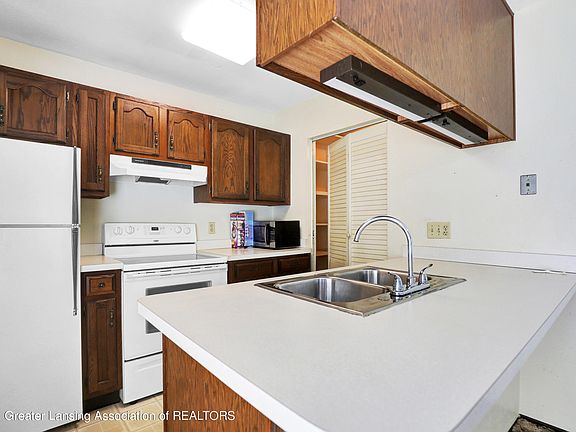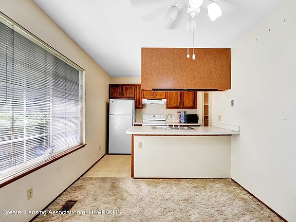 2 bedroom ranch-style condo. Private end unit with large front porch. Beautiful brand new front door with side daylight window. Nice sized living room overlooking kitchen and dining space. 2 bedrooms and full bath on the back side of unit. Full basement with plenty of living space or storage opportunities. Washer and dryer in unit to remain. Convenient 1 car garage. The monthly condo association fee includes snow removal, lawn care, trash, exterior maintenance, fire insurance, liability insurance, water, and sewer.