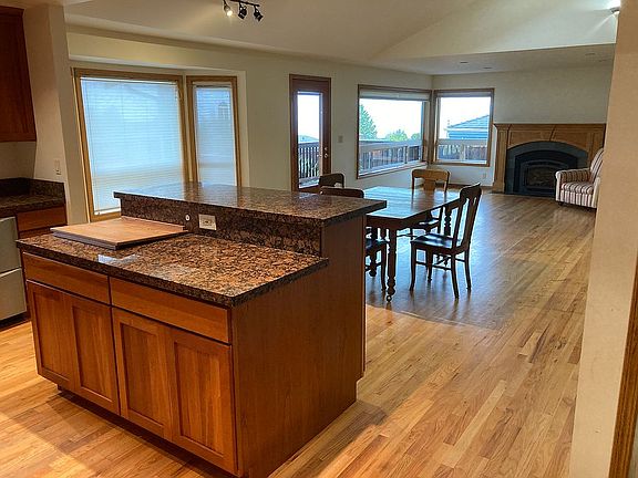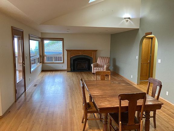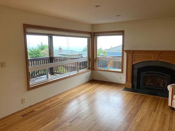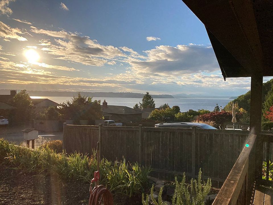 View of Sound from Kitchen, Dining, and Living Rooms. Porch and she shed in upper backyard offer beautiful views of the Sound, Vashon Island, and the shipping lanes. Open great area with gas fireplace and hardwoods. Cherry cabinets in the kitchen with granite counters.