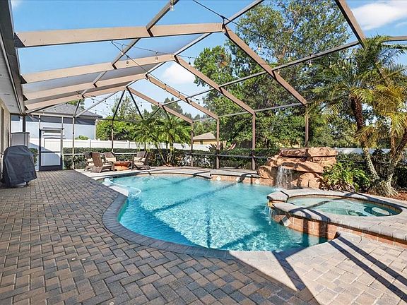 Welcome to this stunning Craftsman-style 4 bedroom, 2 bath pool home in desirable South Lakeland, built by Hulbert Homes! Featuring a new roof (Dec 2024) and over 2,400 sq. ft. of living space, this home offers a modern split floor plan with formal dining, an office/den, and an open kitchen with solid surface countertops, light cabinetry, stainless steel appliances, breakfast bar, and an eat-in nook overlooking the pool. The spacious living areas showcase crown molding, 5” hand-scraped real wood flooring, and fresh neutral paint throughout. The master suite offers double vanities, dual walk-in closets, a garden tub, and direct access to your private outdoor oasis. Step through French doors into nearly 1,500 sq. ft. of resort-style outdoor living with a custom Griffin saltwater pool featuring a Jacuzzi, rock waterfall, color-changing lights, pavered deck, screened enclosure, covered patio with built-in propane fire pit, and custom brick pavered driveway and patio. Enjoy the Florida lifestyle at its best—all in a quiet community with low HOA and a prime South Lakeland location close to shopping, dining, and top-rated schools!