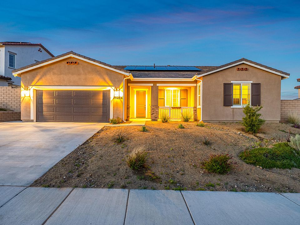 ***LIVE BEAUTIFULLY*** Joshua Ranch West Palmdale Single Story Model-Like Home w/ PAID Solar And A Designer Landscaped Backyard! OVER $81,000 WORTH OF CUSTOM UPGRADES & AMENITIES! Plantation Shutters, Premium Flooring, Upgraded Baseboards, And LED Lighting Throughout Enriches The Home. The Spacious Kitchen Boasts Modern White Cabinetry, Stainless Steel Appliances, Tile Backsplash, A Large Walk-In Pantry, A Farm House Sink, Additional Added Cabinetry Where The Dining Area Is, And A MASSIVE Center Island w/ Barstool Seating That Opens Up To The Family Room. The Primary Suite Is A Great Size And Has Premium Carpeting, A Large Walk-In Closet, And A Luxury Bath w/ Dual Vanities, Therapy Soaking Tub, And Stone-tiled Shower! Relax And Unwind Is Your Fully Landscaped Backyard That Features A California Room, Added Patio Space w/ Pavers, Decomposed Granite Area Perfect For An Above Ground Spa, Artificial Turf, Palms, Flowers, And Privacy! This Beautiful Model-Like Single Story Home Is A MUST See!
