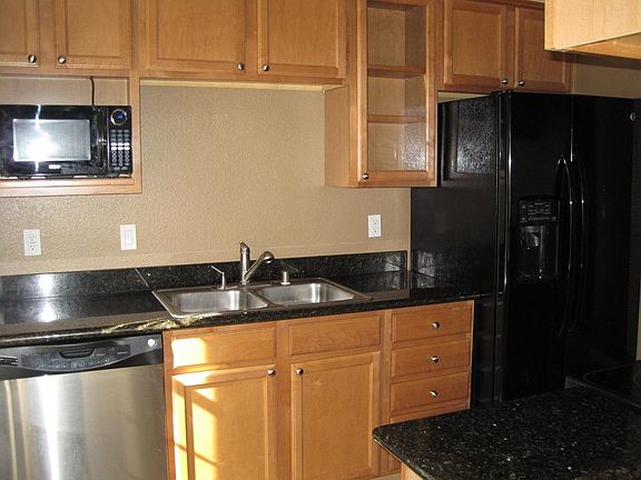 This is a lovely condominium located in North Modesto. It is within walking distance to Kaiser Hospital, shopping centers and Vintage Faire Mall. There is a large living room with vaulted ceilings and an adjacent dining area. It has two-toned paint. The kitchen has granite counters, and a refrigerator, dishwasher, electric range/oven and garbage disposal. There is central heating and air conditioning. There is an indoor laundry room with full-sized washer and dryer. The master bedroom has a large mirror closet, and the master bathroom has granite counter tops. This condominium complex also has a gated pool and jacuzzi. This is a no-smoking and no-pet home.