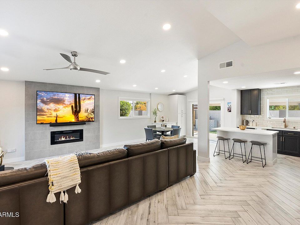 Updated and move in ready. Stunning totally remodeled home in a prime location with an incredible list of updates and great curb appeal! 2022 -all new new interior doors, interior paint, LED lights/fixtures/lighting & mirrors, windows, sliders, AC unit, electrical, plumbing, roof, baths, kitchen, and floors! Designer touches throughout. Gorgeous great room with herringbone pattern wood plank tile, linear fireplace & accent wall, cabinets & beverage refrigerator. Kitchen features include all new kitchen cabinets, quartz counters, island, and subway tile backsplash - range electric or gas option. 1 bedroom and flex room downstairs and full bathroom. Primary bedroom has wood floors and painted barn wood wall. Modern primary bathroom has a metal and smoked glass door, dual vanities, tiled wall and amazing shower structure. Designer lighting and mirrors. 3 more bedrooms and 2 full bathrooms upstairs. New electrical panel and plumbing. Diving pool, covered patio w/ tile, built-in BBQ, and synthetic grass! NO HOA. Perfect location near Whole Foods, Trader Joe's, Frys, OSHO brewery, Starbucks and numerous restaurants as well as re-invented PV Mall. Short distance to dozens of hiking trails, the Phoenix Mt. preserve, golf courses and shopping. Conveniently located near Shea Blvd with quick access to the 51 Freeway for an easy commute and just minutes to the airport & downtown. Updated and move in ready.