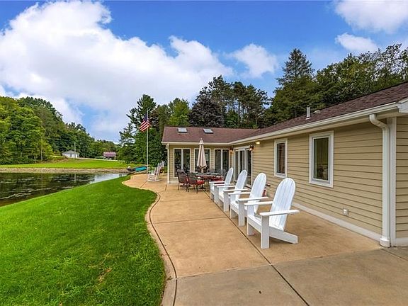 Enjoy Level Living in this Pristine Ranch extensively renovated - newer roof, windows, hardy plank siding, HVAC radiant heat/forced hot air, whole house AC & fabulous new interior offering resort style living on 16 Private Acres overlooking a scenic 2 Acre Lake surrounded by nature featuring a Rear Patio, Outdoor Kitchen/Natural Gas BBQ, Firepit, Boat Launch, 3 Car Garage radiant heat/finished interior, Front Sitting Porch, Hardwood Floor Living Room Marble Fireplace, Granite Center Island Kitchen, Gas Cooking, Sunny Breakfast Nook Glass Doors to the Patio, Office/Den off Kitchen, Laundryroom window & exterior door, Vaulted Family Room w/Skylights, Master Suite Ceiling Fan & 2 Wardrobe Closets, Luxurious Master Bath w/Granite Double Bowl Vanity & Glass Enclosed Walk-in Shower, 2 more spacious Bedrooms & 2nd Full Bath with Tub/Shower Surround. Your private retreat awaits just 4 Miles to Grove City Outlets/Interstate 79 Slippery Rock Exit & 8 Miles to Jamison Hospital in New Castle.