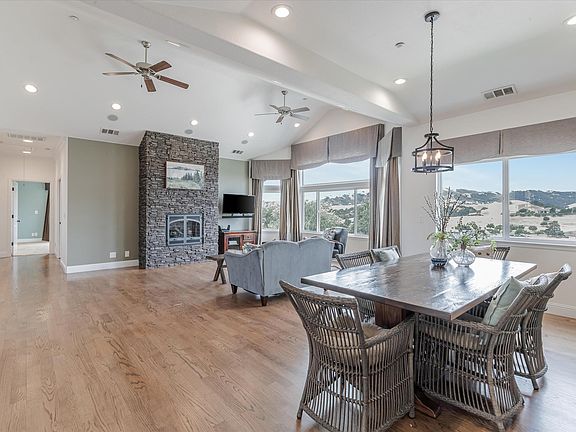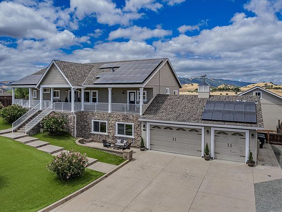 Welcome to Sunol! This property, which lies conveniently between the East Bay and Silicon Valley, is situated on just over 6 acres, has wonderful valley views, and features a barn with paddock area, a pasture, a riding area, and a large detached shop/garage with RV door and built in dust collection system. Additional features include: 2 primary suites, 4 patios, full width covered front porch, 2 laundry areas, an office/den, expansive interior storage area, deck off upstairs primary suite, large pantry, interior elevator, foyer, hardwood floors throughout the living areas, large downstairs bedrooms with potentially multiple uses, kitchenette/bistro/wet bar area (with sink, dishwasher and refrigerator), a 3 car attached garage with expansive driveway and additional parking spaces, a fenced orchard with a viewing area, dual side yard access, multiple storage tanks for irrigation water, solar system (leased), and more!