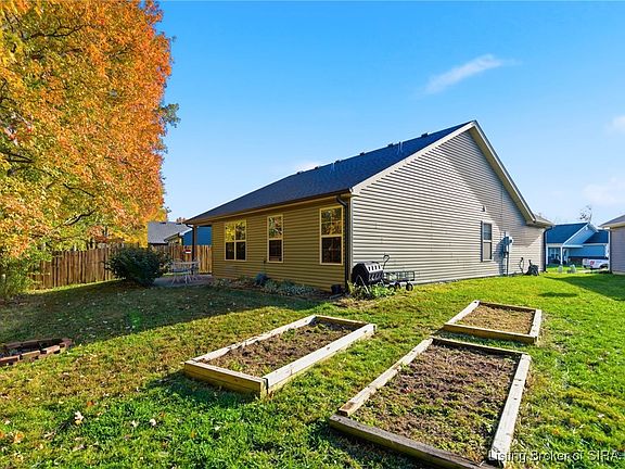 Welcome to Glenwood Springs! This 3 bedroom, 2 full bath home features an inviting open floor plan with great natural light throughout. The spacious kitchen offers stainless steel appliances (which remain), abundant cabinet and counter space, a large island/bar, and a pantry closet — perfect for cooking and entertaining. The main bedroom suite includes a private en-suite bathroom and a walk-in closet. Enjoy laminate flooring throughout the main living areas for easy maintenance and a clean, modern feel. Step outside to the patio and enjoy a shaded, private backyard — ideal for relaxing or hosting friends. Roof and gutters were replaced in 2025, offering peace of mind for years to come. Located in a quiet neighborhood, yet just minutes to I-265, grocery stores, local restaurants, and schools.