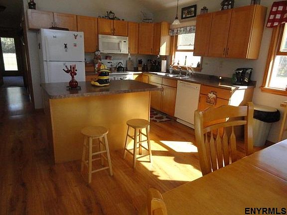 Beautiful Schoharie views, awesome setting on 2.45 AC! 17 yr young RANCH with open floor plan, fully applianced kitchen with island & adjacent dining w/atrium doors to a wrap-around deck, Master bedroom with full bath and WI closet, plus 2nd BR and full main bath. The high, dry basement is insulated and ready to finish for a family room or rec room, 200 amp electric w/transfer box for a generator,newer Culligan water conditioning system & reverse osmosis. plus a newer garage w/opener. EZ commute via I88.