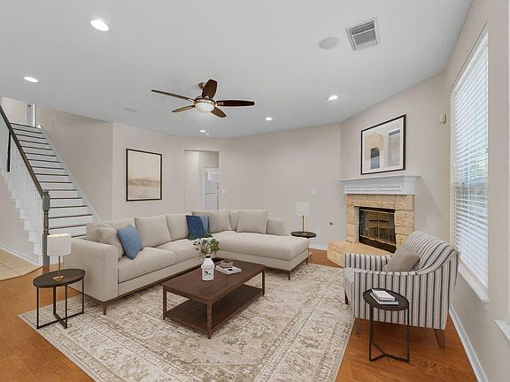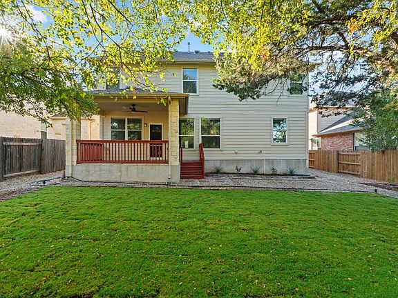 Don’t miss this well-maintained 5-bedroom, 3-bathroom home in Mayfield Ranch. Mature trees and a charming covered front porch provide instant curb appeal and the perfect spot for morning coffee or connecting with neighbors. The flexible floor plan includes a guest room with a full bath on the main level, offering privacy for visitors or multigenerational living. Formal living and dining areas at the front feature hardwood floors with lifetime warranty from Costco, while the back of the home opens to a spacious kitchen and family room that flow seamlessly for gatherings. Fresh interior paint and new light fixtures and ceiling fans give the home a bright, inviting, and modern feel, while natural light fills every space. The kitchen boasts Corian counters, stainless steel appliances including a new dishwasher, abundant cabinetry, and a built-in study nook to keep homework, devices, or mail organized. Upstairs, a generous game room with a wet bar and mini fridge is perfect for movie nights, game days, or sleepovers. The large, private backyard has no rear neighbor, a covered patio for outdoor living, and low-maintenance xeriscaping—giving you more time to enjoy your weekends. Major updates include a roof and HVAC replaced in 2021, providing peace of mind. Located just blocks from the neighborhood pool, park, and playground, the home allows easy access to all the community amenities while benefiting from lower HOA dues. It also feeds into highly rated Chandler Oaks Elementary and Walsh Middle School, as ranked on GreatSchools.com. With a low 1.77% tax rate and convenient access to shopping, dining, and major roadways, this home truly has it all.