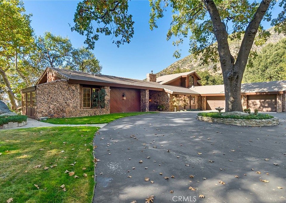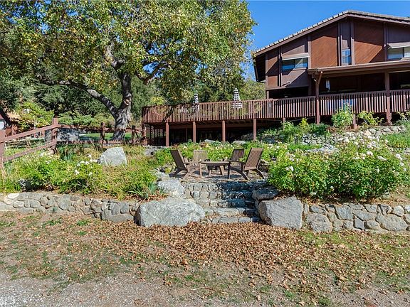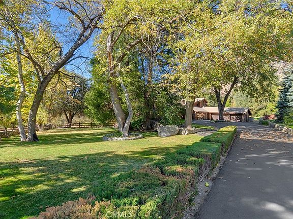 This custom ?mountain style chalet sits privately amongst big Sycamore and Oak trees. The beautiful lawns and ?the large rock formations surround the home with a natural ?fenced meadow beyond. A gated front entrance with a long drive ?way and a full circle at the ?home entry and garage. A lower entrance provides access to the two RV garages and the shop.? This home offers 3430 square feet, with four bedrooms and three bath, beautiful open beam cathedral, ceilings, large stone fireplace, natural wood accents and large windows to enjoy the beautiful surroundings. The primary suite and one other bedroom, which is currently being used as a game room, are both on the first level. The second level has two bedrooms and a full bath. The living spaces are large and open, warm and inviting. The rear deck goes the entire span of the house and is a very tranquil ?place to relax. The RV garages are approximately 40 foot and 32 foot deep. There is a guest cottage with a kitchen over one of the garages and an additional single garage workshop ?that ?stands alone. The deck and patios are beautifully designed with gardens and gathering areas that are easily accessible and are often enjoyed.? This tranquil setting enjoys the four seasons, the slightly cooler temperatures and the mountain feel without the mountain drive. The 2 acres of land provides space for additional uses, orchard, vineyard, hobbies and more. Easy to enjoy this home and the possibilities of room to personalize the use of the land. More photos coming.